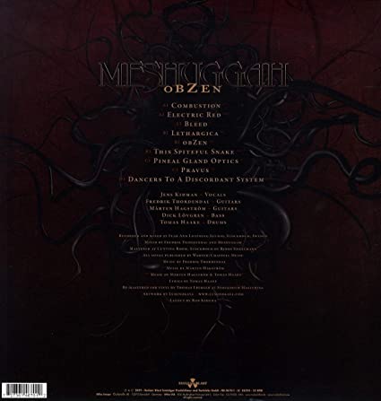 Double vinyl LP pressing. obZen is the sixth album by Swedish heavy metal band Meshuggah. It was originally released in March, 2008. Tomas Haake made his return as the studio drummer for the record after the Drumkit from Hell drum software was used on Catch Thirtythree. The release of the album was followed by their first world tour. In an interview with Revolver, Haake stated that obZen would be a collective return to the band's past works, signaling a shift in direction away from their previous effort, Catch Thirtythree. "We've got some fast, intense songs and hectic, heavy stuff that draws from all the things we've done in the past." He elaborated on the concept of the album in another interview, saying: "If you haven't figured it out yet, obZen means that mankind has found it's 'zen' in the obscure and obscene."